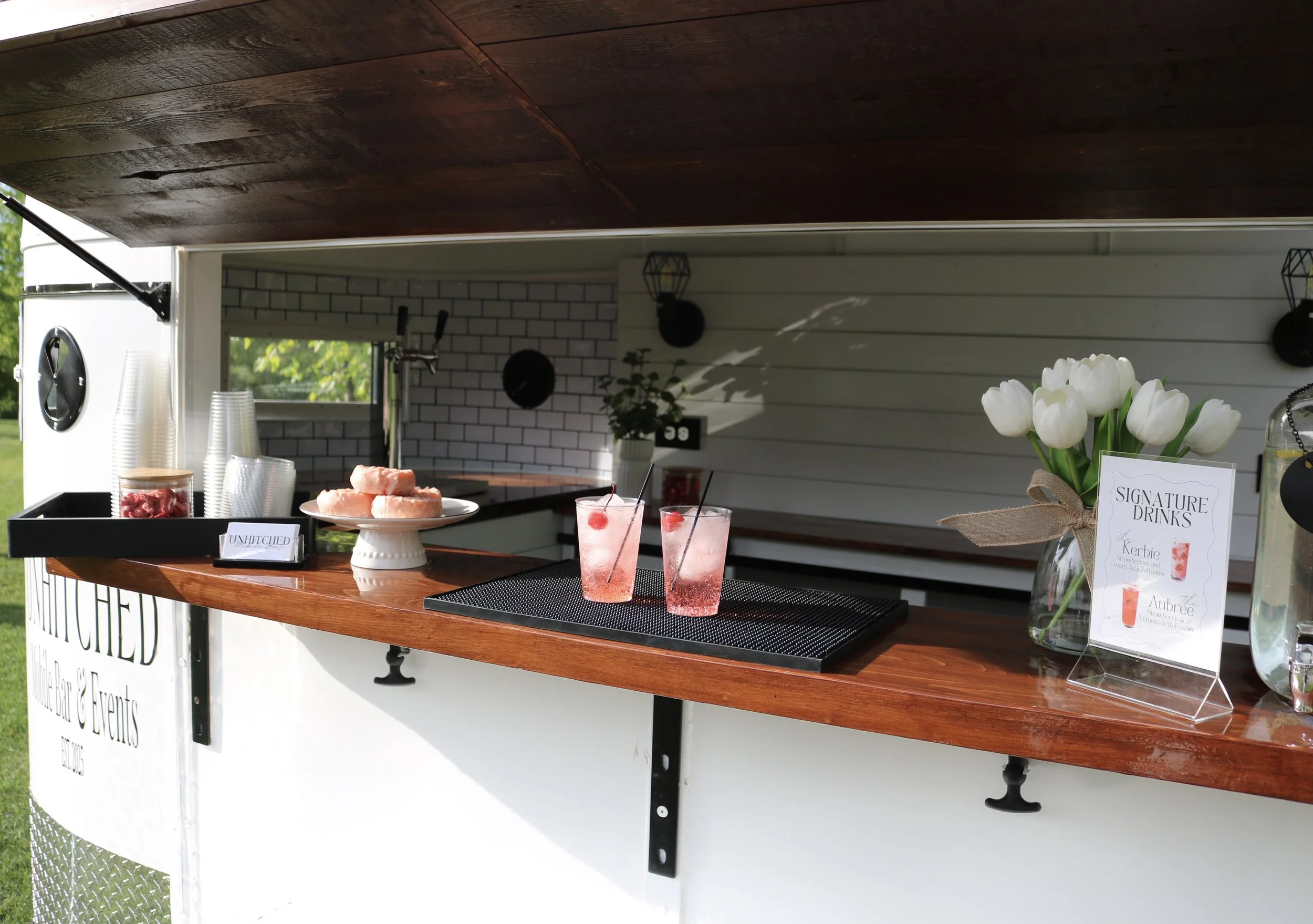 Whether you’re serving cocktails, mocktails, lemonade, or using the trailer for cupcakes, our mobile bar is fully customizable to match your event’s vibe and vision. From the bar setup and décor to the service and teardown, we make it easy to host a fun, unforgettable celebration — wherever the road (or your guest list) takes us. Unhitched is more than a bar on wheels — it’s a full-on event experience made to impress, with flexibility, style, and good energy!
