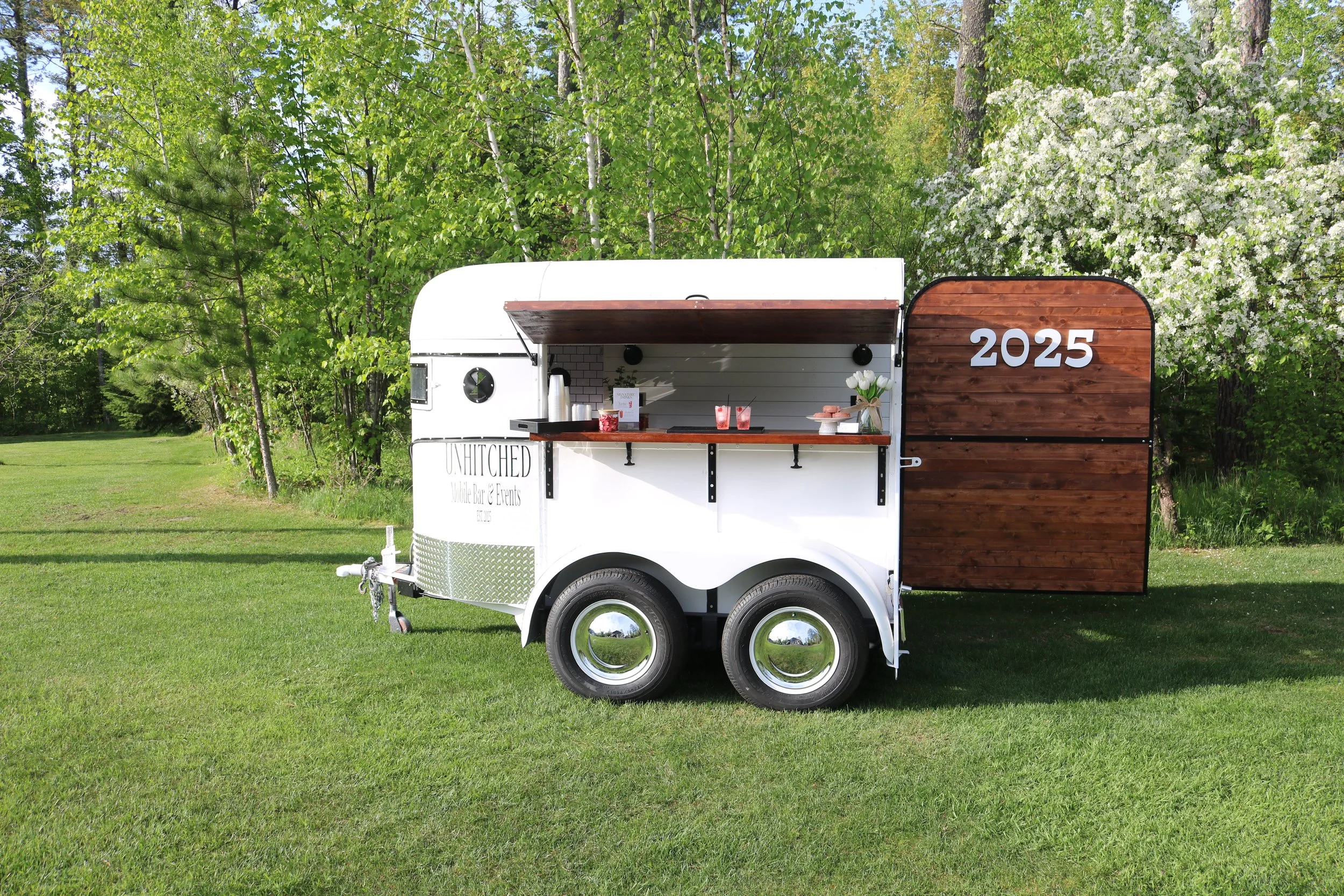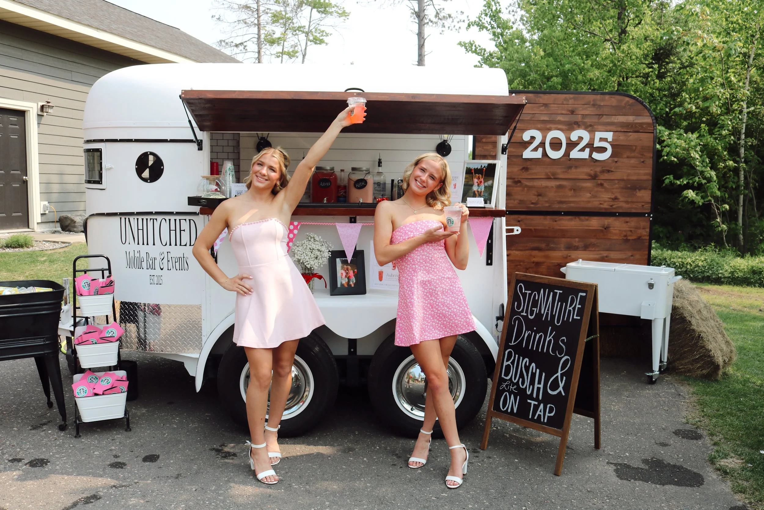 We’re Unhitched—your go-to dry hire mobile bar + event experience rolling through Northern Minnesota. Whether it’s a wedding, grad party, backyard bash, or corporate celebration, we pull up with the cutest trailer, good vibes, and everything but the booze.